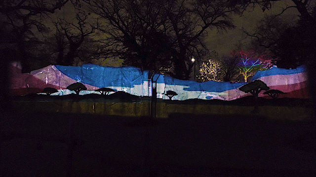 10th Floor Productions worked with the animator Sigmund Washington to bring his ideas and animations to life on the facade of the Peacock Pavilion which transformed into Santa’s Lodge for the holiday season, as well as updating the projections in the African Plains to become more panoramic and whimsical. 10th Floor Productions designed and, with the help of the staff at the Zoo, facilitated the installation of the complete system from mounting the enclosures to networking and signal as well as projection mapping and programming.